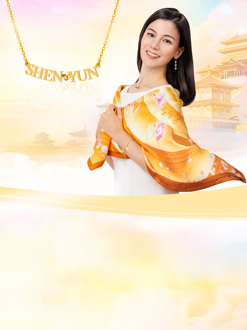 A special tribute to the majestic beauty and virtues presented in Shen Yun performances, this scarf and jewelry collection is a perfect tribute to Shen Yun's two-decade legacy. Its bold design brings a touch of brilliance to your daily adventures.