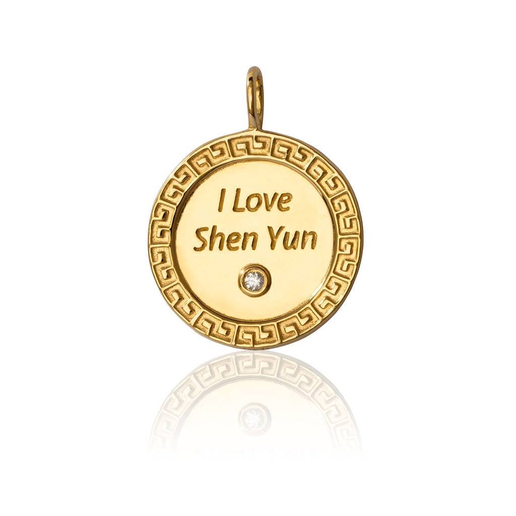 Keep Shen Yun's exhilarating onstage energy close by your side all year round with this unique charm. Our signature logo coin can be worn in the reverse to reveal a tiny gem signifying the pure heart behind "I Love Shen Yun."