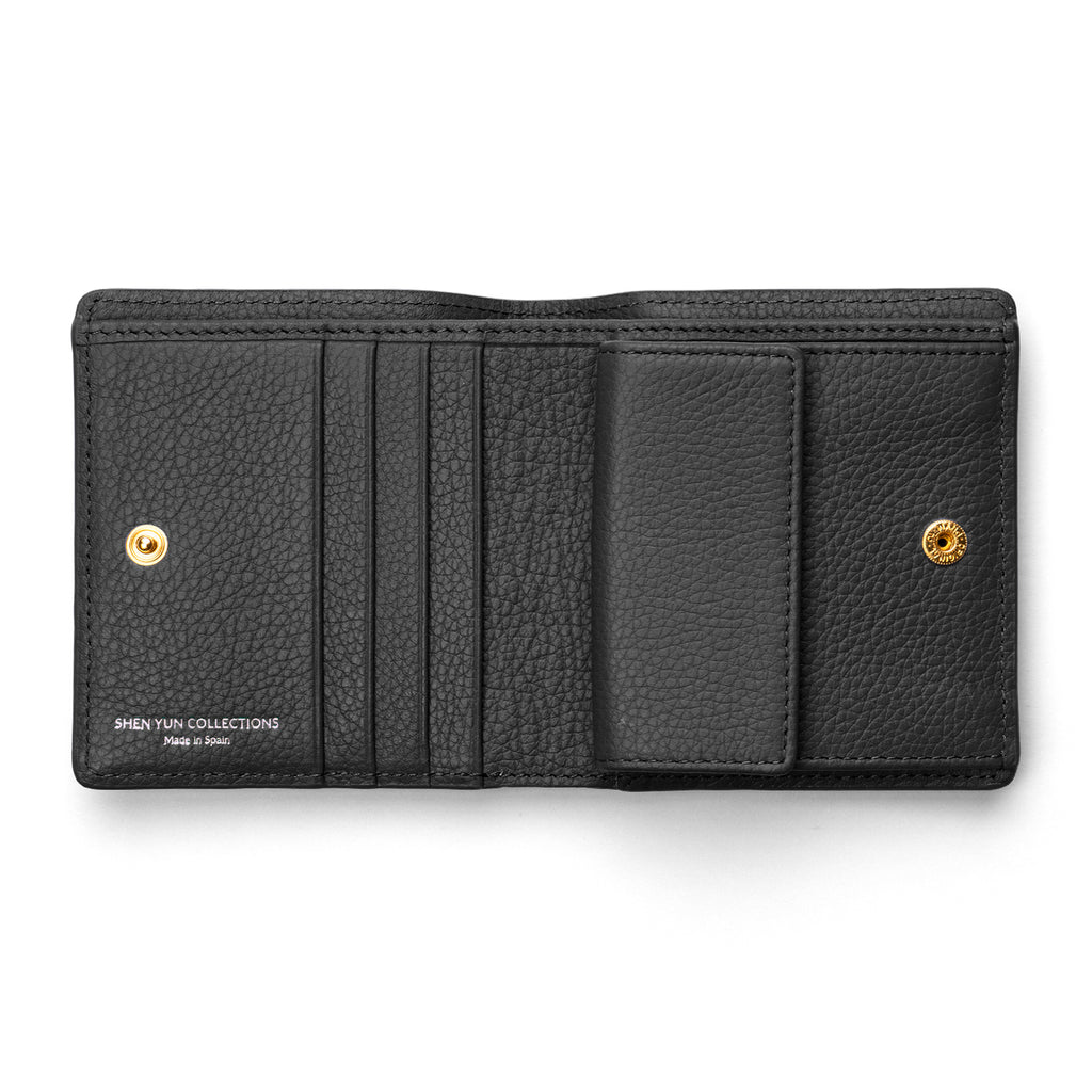 * One exterior slip pocket and opens to reveal an interior with four card slots and compartments for cash & coins