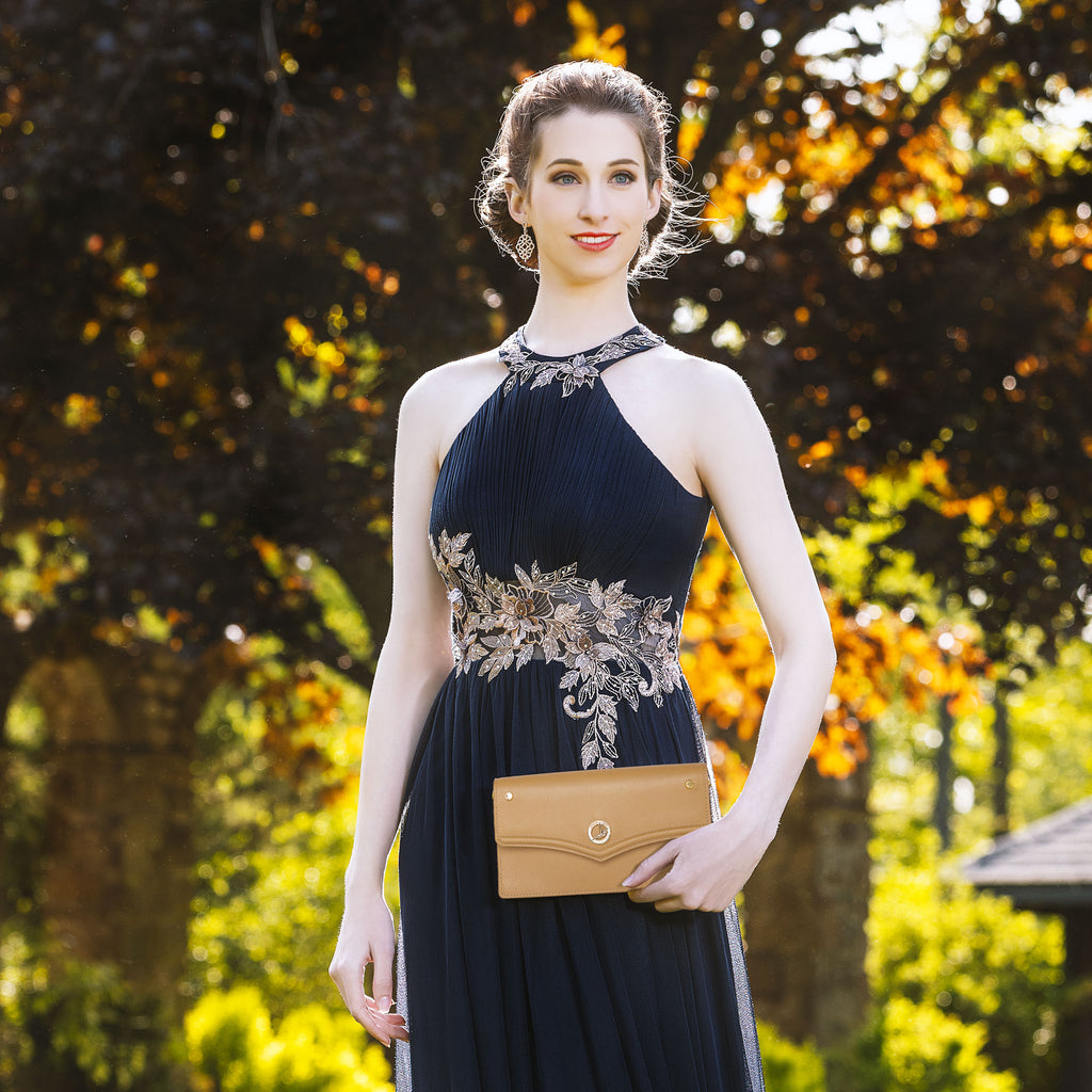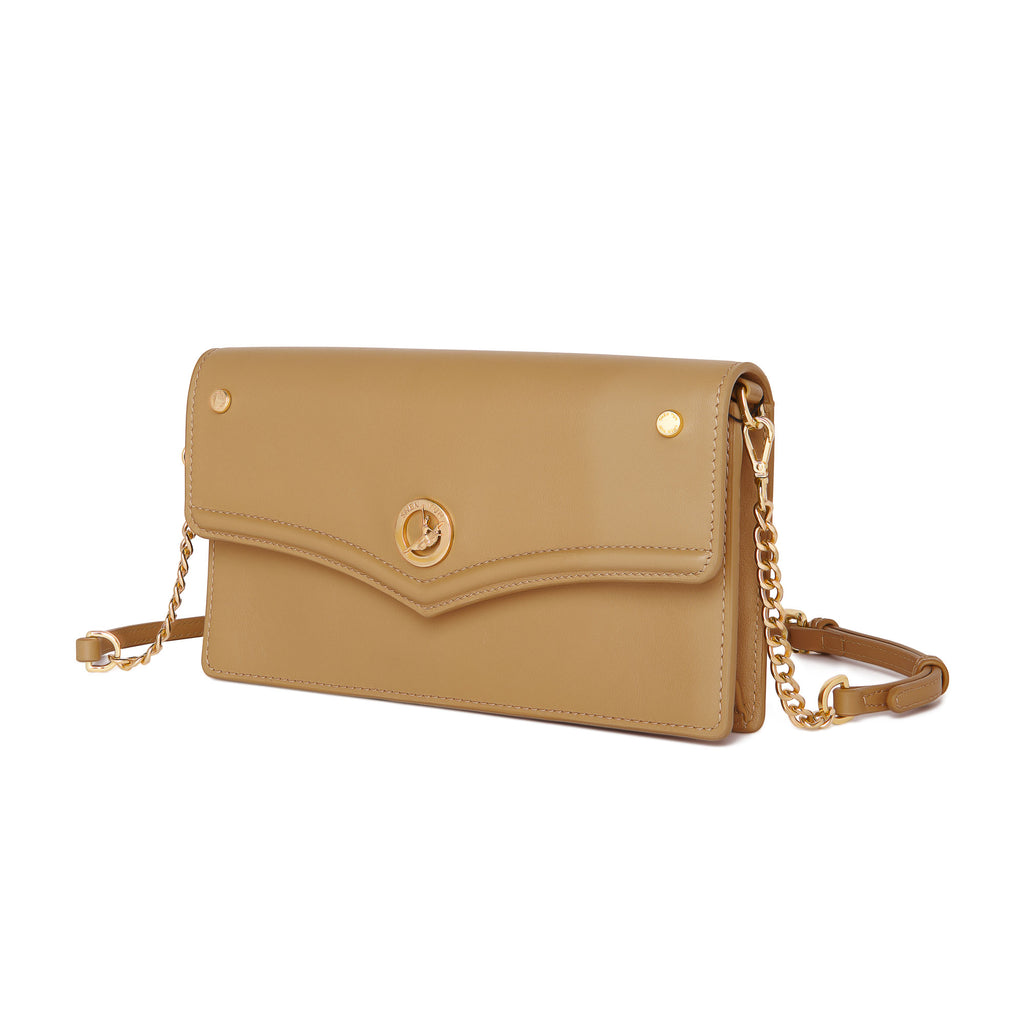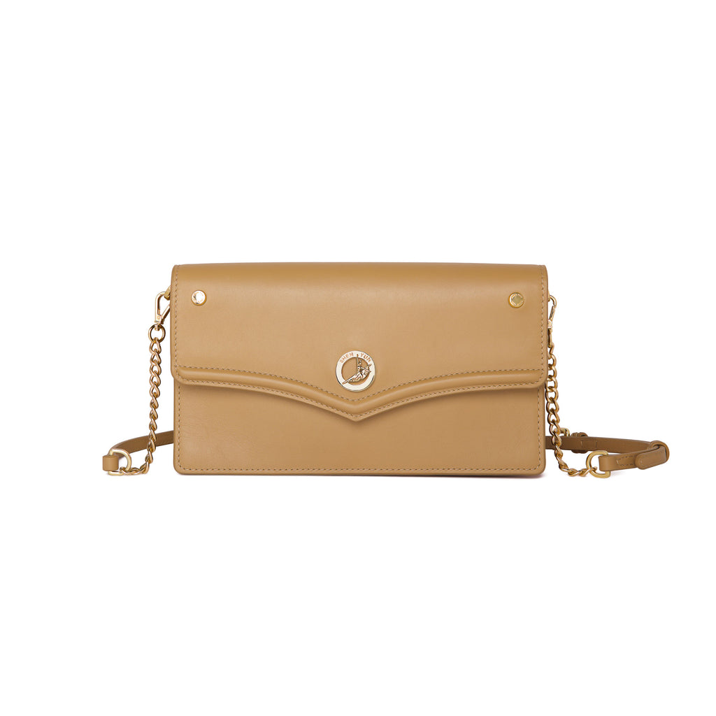 • Magnetic snap closure in the center opens to a spacious interior with two main compartments