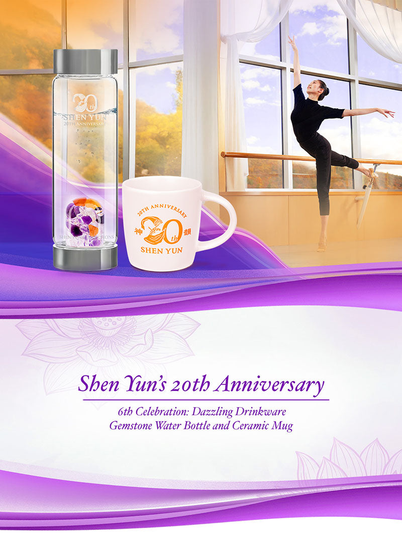 神韻二十周年紀念寶石水瓶,於德國阿爾卑斯山精心設計,瓶中天然水晶寶石經悉心甄選,色澤與神韻2026年巡演海報相映成輝。將您飲用的每一口清水,都化為非凡的生命體驗。