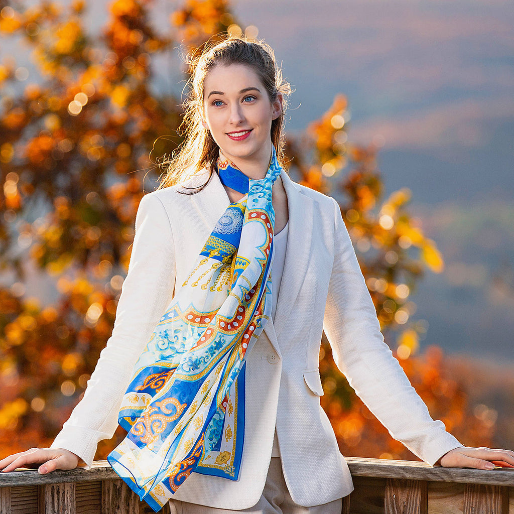 • 100% 真絲雪紡 • 70" x 22.5" 韓國製造